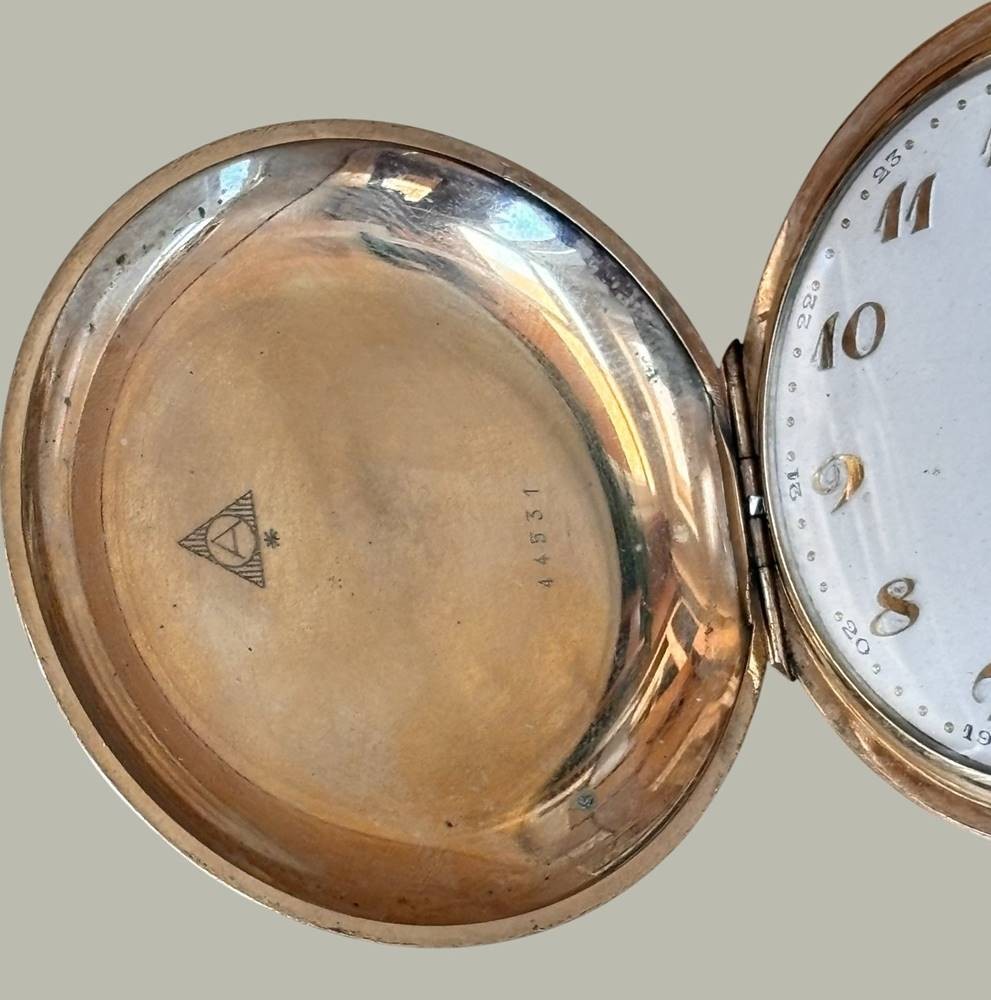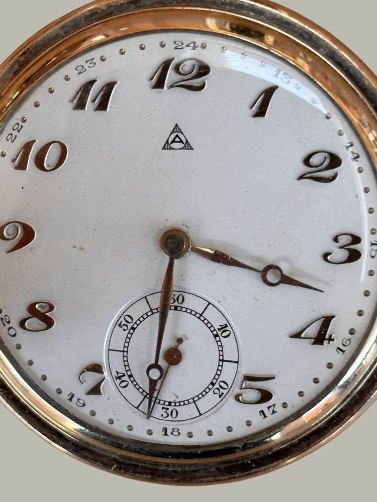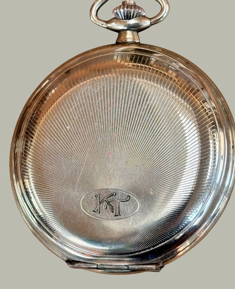 vergoldete Sprungdeckel Taschenuhr "Alpina" Swiss, Werk steht, vorne Ziermonogramm "KT", guter Zustand, D-5 cm [1]