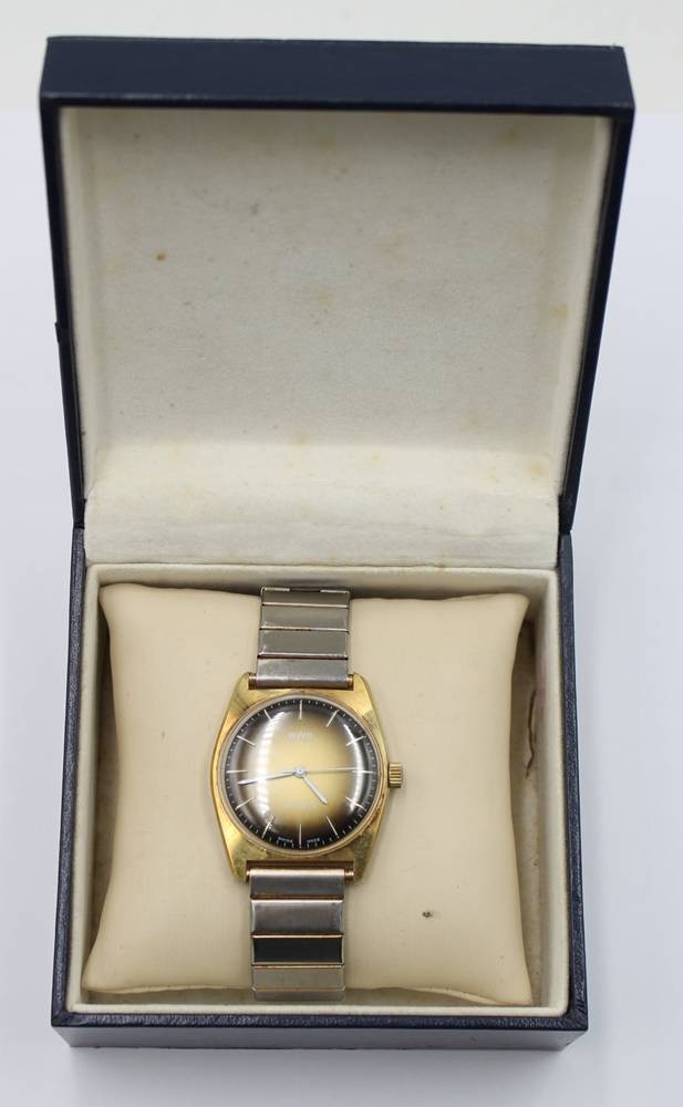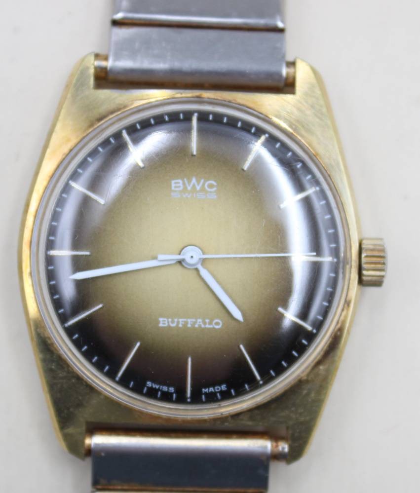 Vintage-Armbanduhr, BWC Buffalo, Handaufzug, Werk läuft, getragene Erhaltung, D- 3,4cm , orig. Box [1]