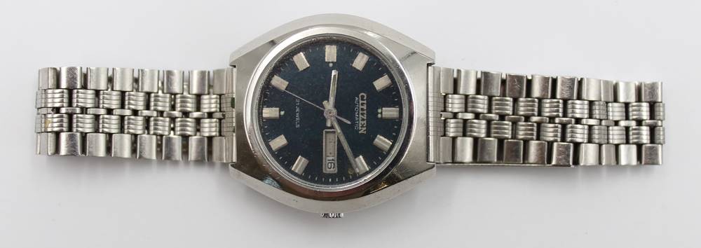Vintage-Armbanduhr, Citizen, Automatik, Werk läuft, Datum lässt sich nicht gesondert einstellen, Tragespuren, D-3,5cm [1]