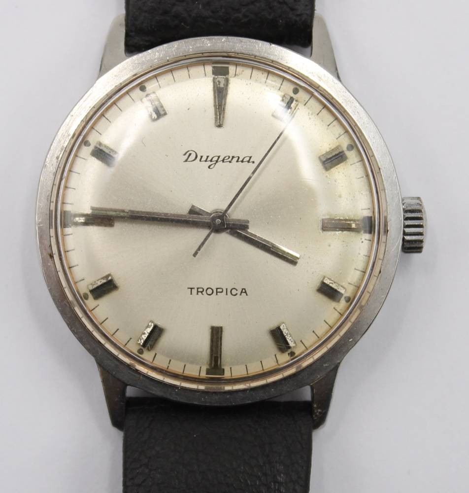 Vintage-Armbanduhr, Dugena Tropica, Handaufzug, Werk läuft, getragene Erhaltung, D- 3,5cm [1]