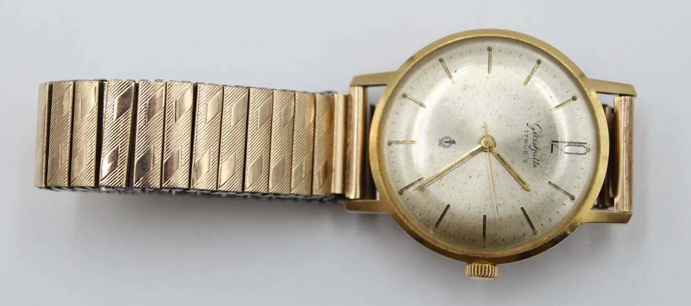 Vintage-Armbanduhr, Glashütte , Handaufzug, Werk läuft, Altersspuren, D-3,5cm [1]