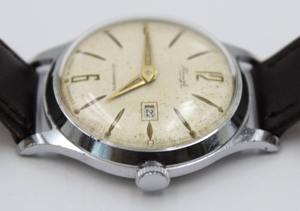 Vintage-Armbanduhr, Kienzle, Handaufzug, Werk läuft an, Tragespuren, ca. D-3cm [1]