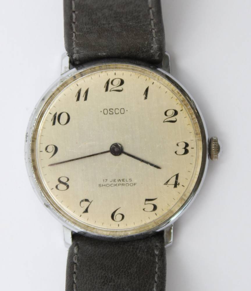 Vintage-Armbanduhr, OSCO, Handaufzug, Werk läuft, Tragespuren, D-3,2cm [1]