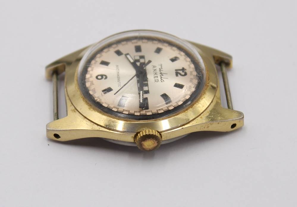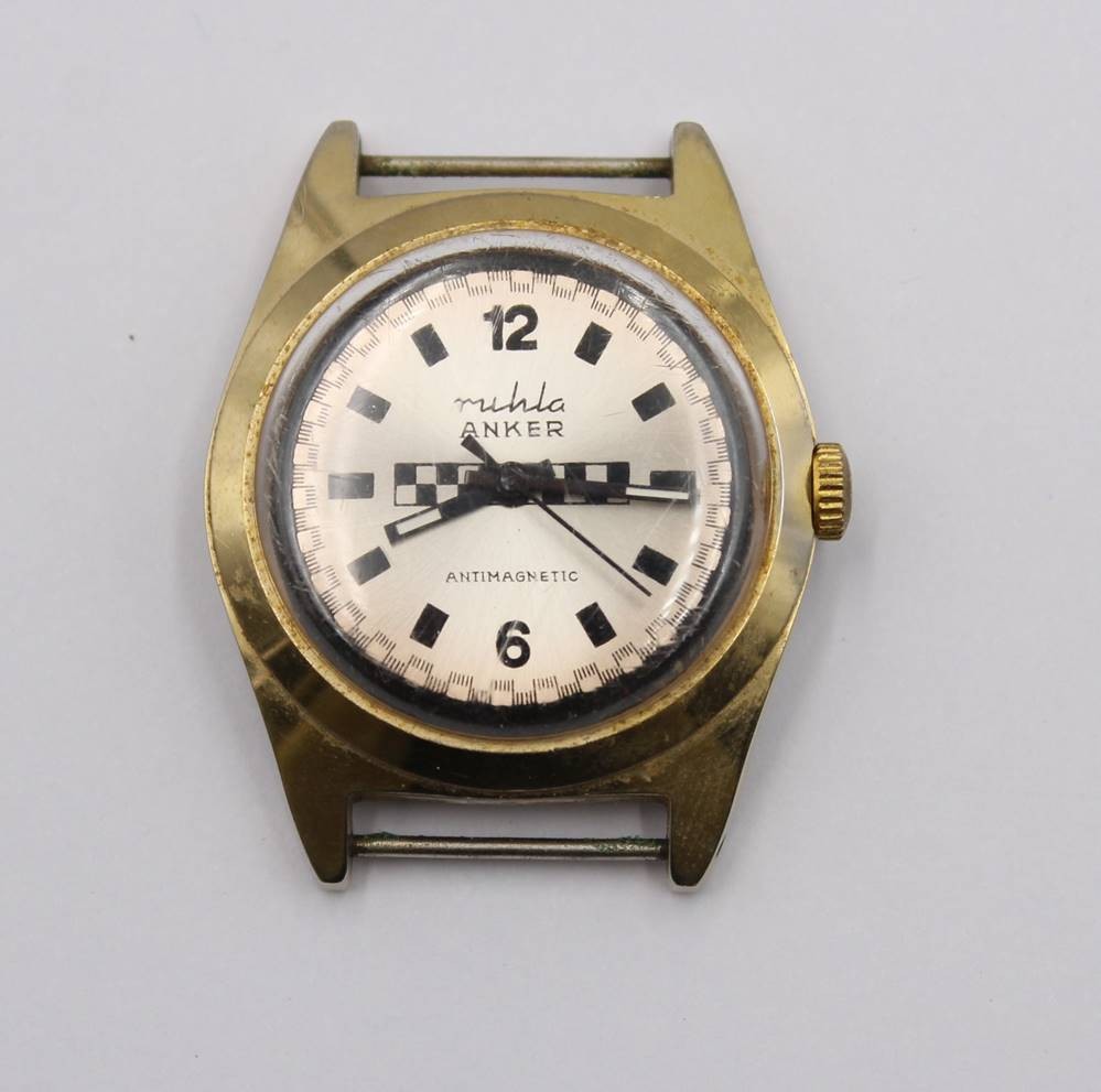 Vintage-Armbanduhr, Ruhla/Anker, Handaufzug, Werk läuft kurz an (2-3sek.), ohne Band, ca. D-3,5cm [1]