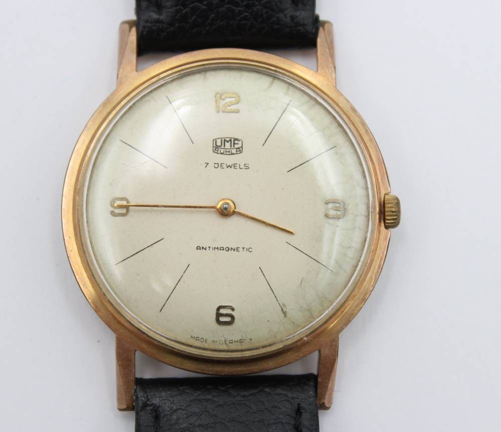 Vintage Armbanduhr, UMF RUHLA , Handaufzug, Werk defekt, D-3,6cm [1]