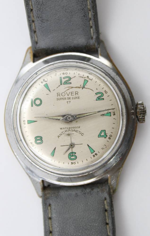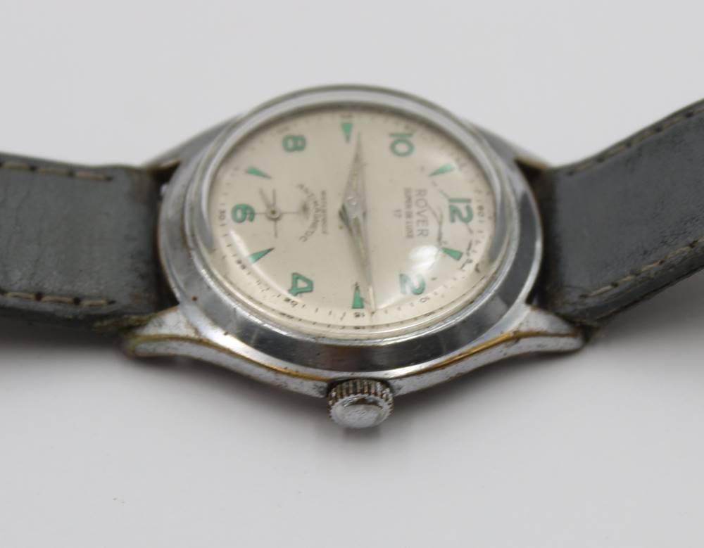 Vintage-Armbanduhr,Rover Super De Luxe, Handaufzug, Werk läuft, Tragespuren, D-3,5cm [1]