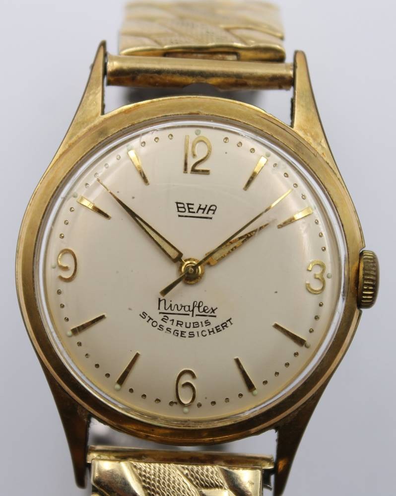 vintage mechan. HAU BEHA Nivaflex, 21 Rubis, Double Zugband, Werk läuft kurz an [1]