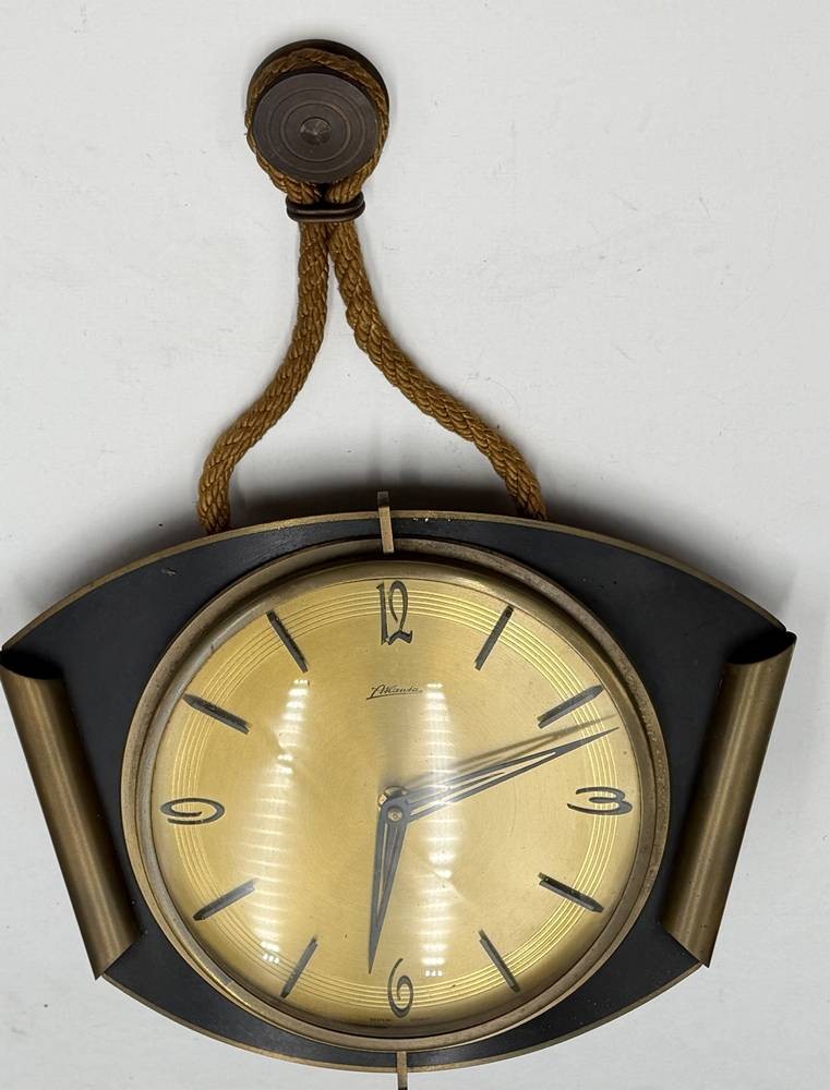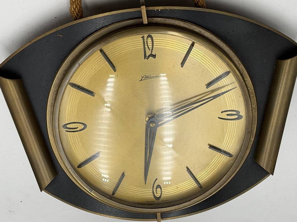 vintage mechan. Wanduhr "Atlanta" Messinggehäuse, Werk läuft, 24x29 cm [1]