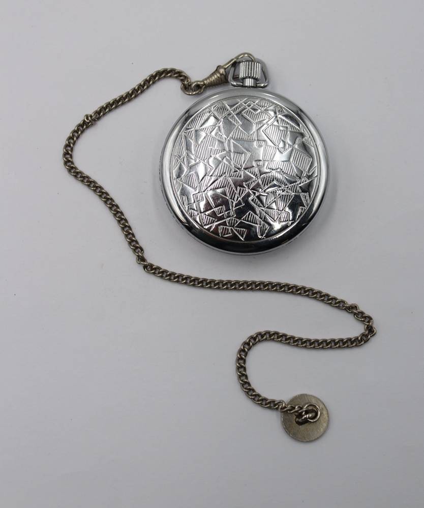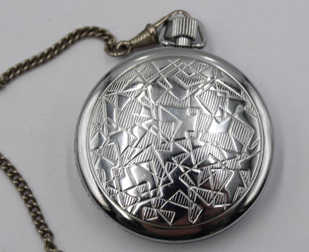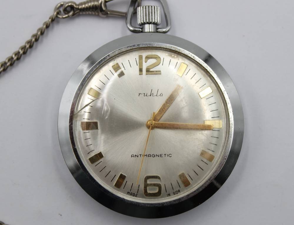 Vintage-Taschenuhr, Ruhla, Handaufzug, Werk läuft, an Kette, getragene Erhaltung, D-4,6 cm [1]