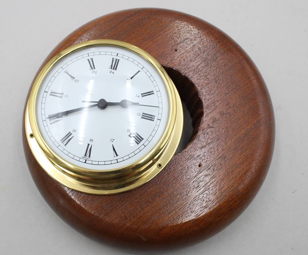 Wanduhr im martime Look, auf Holz, nicht verschraubt, ca. D-27cm Uhr D-15,5cm, Batteriewerk läuft [1]