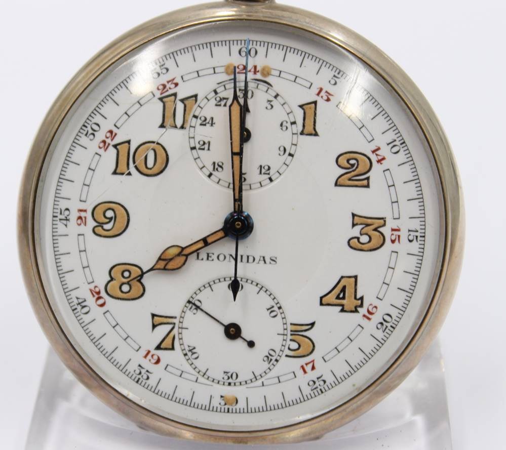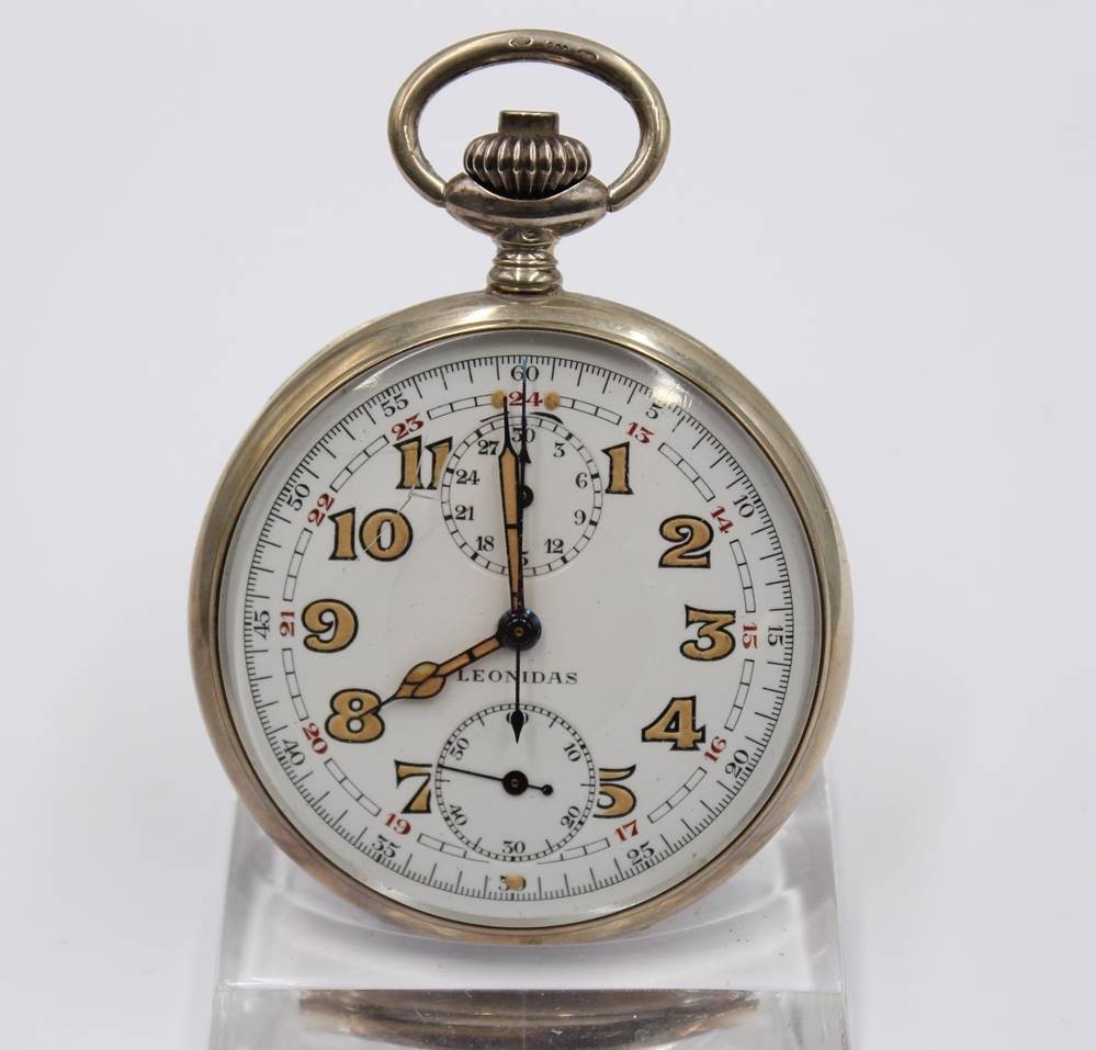 wohl Militär-Taschenuhr, Leonidas, 800er Silbergehäuse, Kronenaufzug, Werk läuft, Glas mit Riss, ca. D-5cm [1]