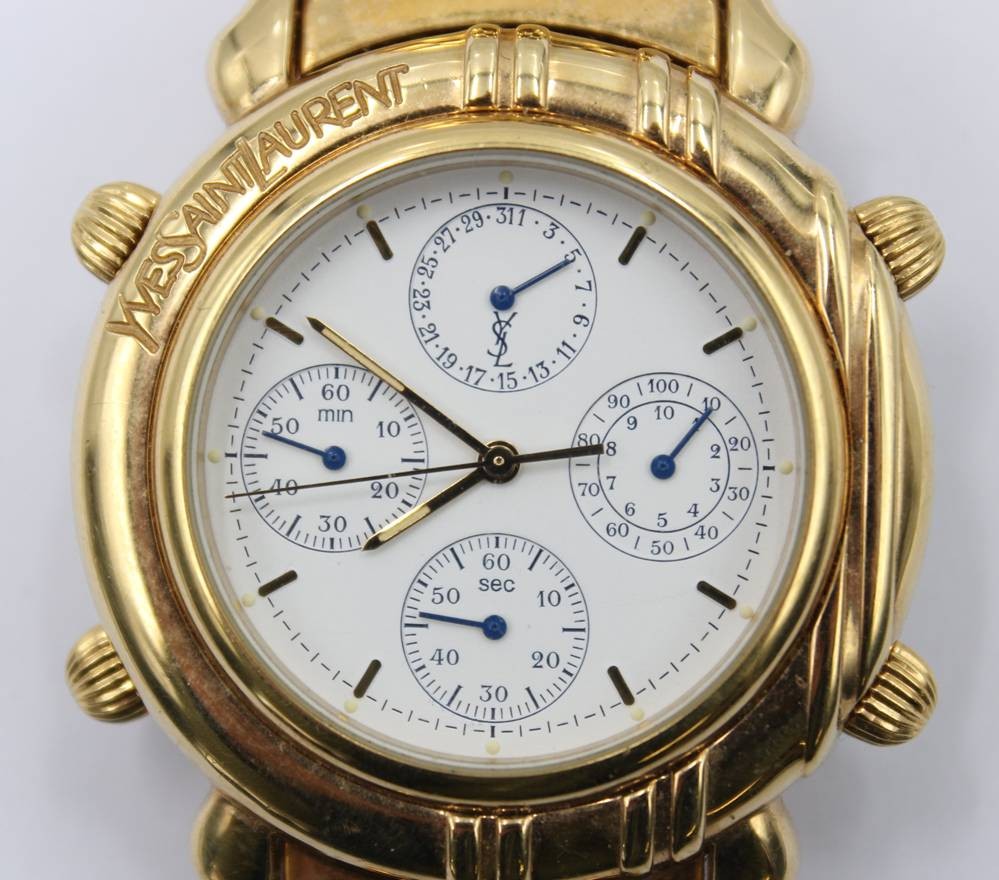Yves Saint Laurent Vintage- Herrenarmbanduhr , goldfarben, Quarzwerk nicht geprüft, ca. D-4cm [1]