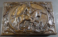 Bronze Platte auf Holz mit Hl. Georg und Spruch " unter Fünf Könige unter drei Kaiser" wohl zum Dreikaiserjahr 1888, 9x14 cm