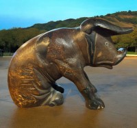 3x Goebel-Clowns, Happy Clowns, Kunstmasse, 1x auf Stein geklebt, ca. H-19cm
