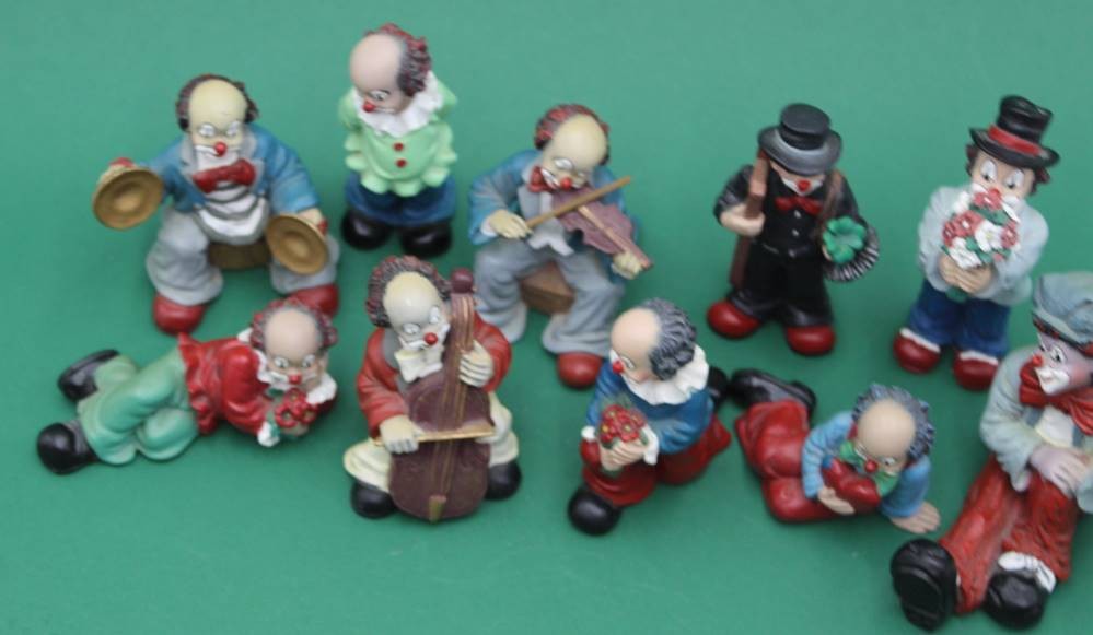 10x kleine "Gilde" Clowns, H-max. ca. 10 cm, 1x Blumenstrauss abgebrochen, aber anbei [1]