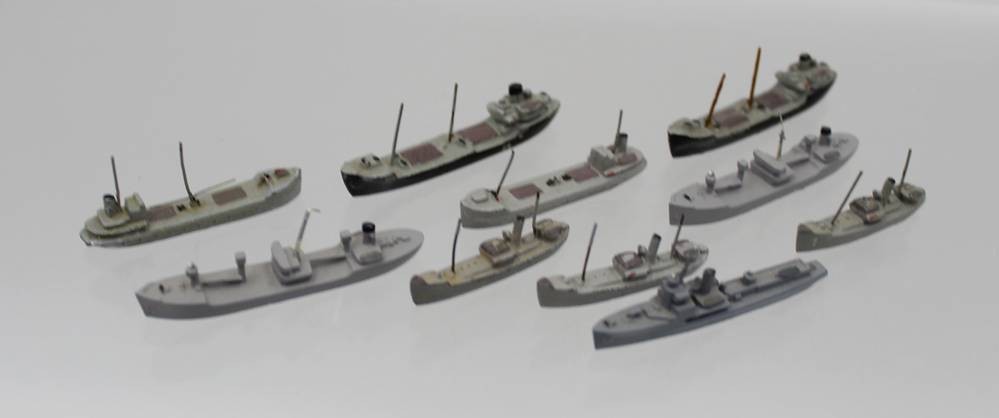 10x Schiffsminiaturen, Wiking, älter, militär. Transportschiffe, Größte L-5,3cm