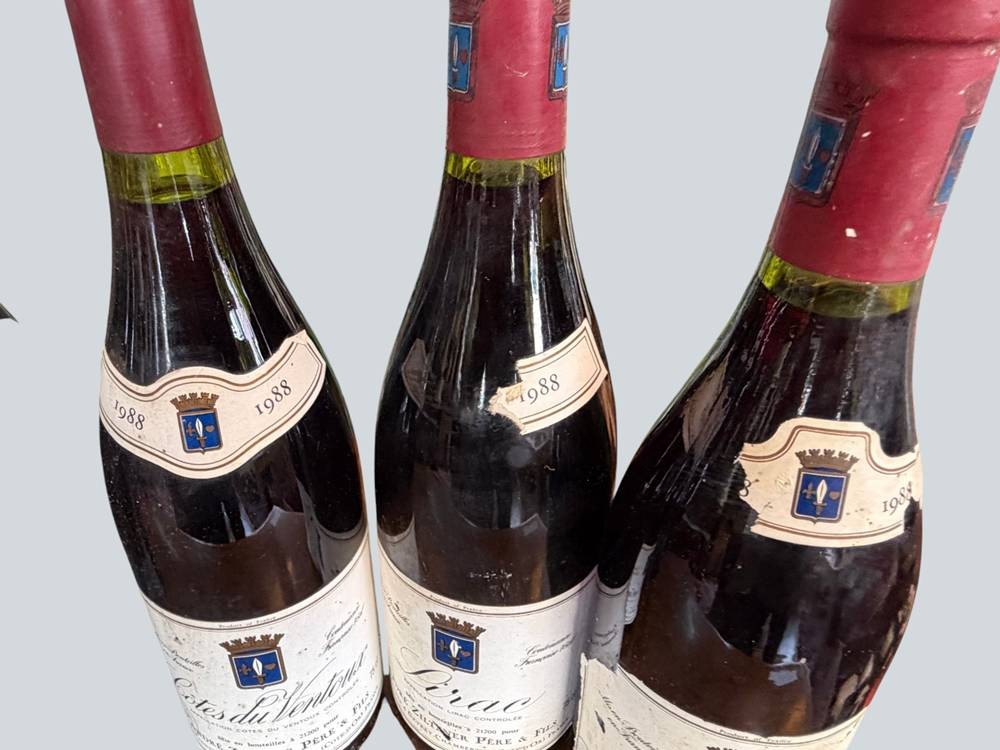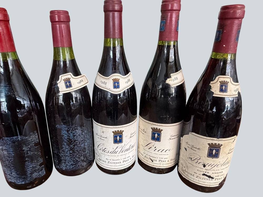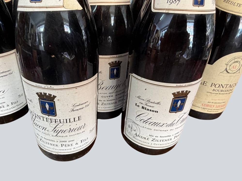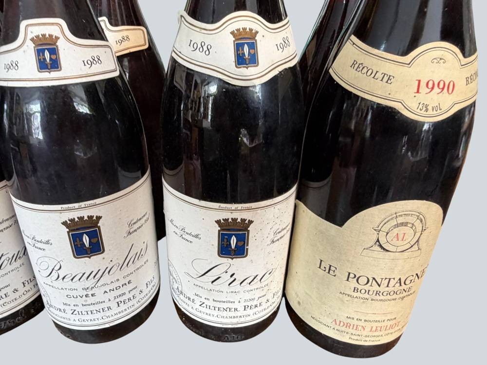 12 Flaschen französ. Rotwein, 1988-1990, Beaujolais, Cote d'Or etc., bei zweien fehlt Etikett [1]