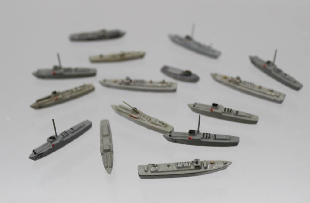 15x Schiffsminiaturen, Wiking, älter, militär. Schiffe, Metall/Kunststoff, ca. 1,5 bis 3cm