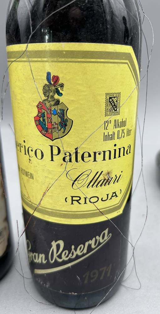2 Flaschen spanischer Rotwein, 1954 und 1971 (dieser mit Verdunstungsverlust) [1]