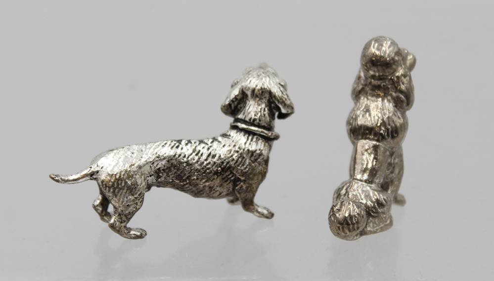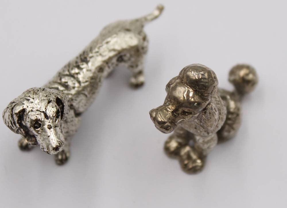 2 kl. Hundefiguren, silberfarben, ca. H-3,5cm [1]