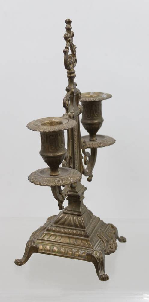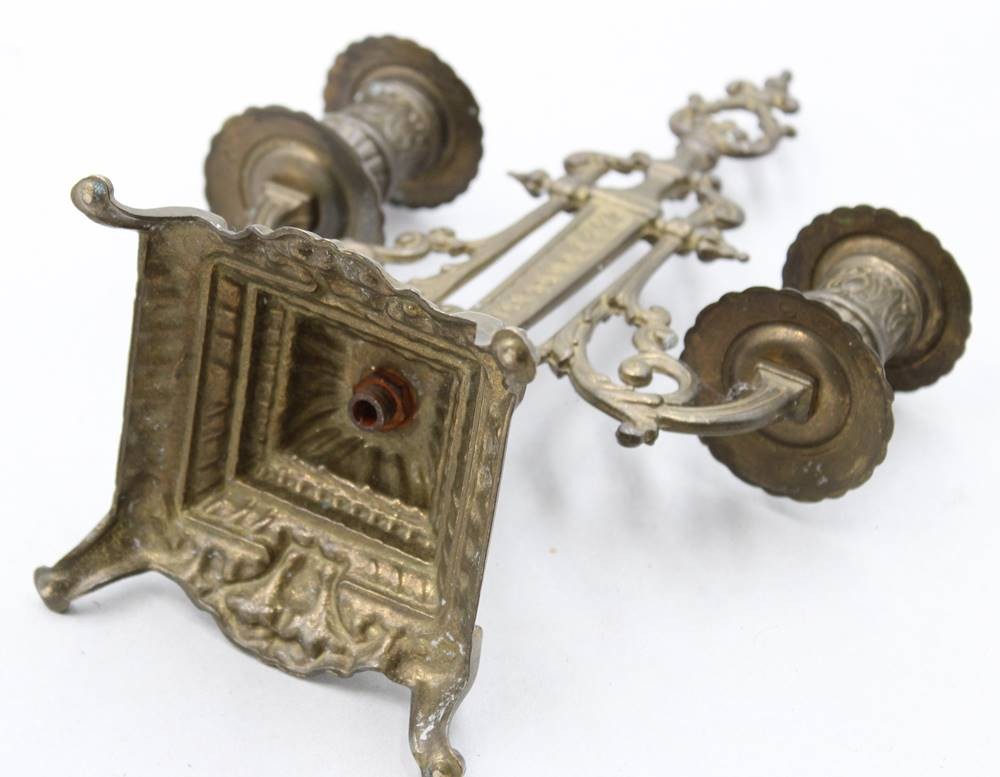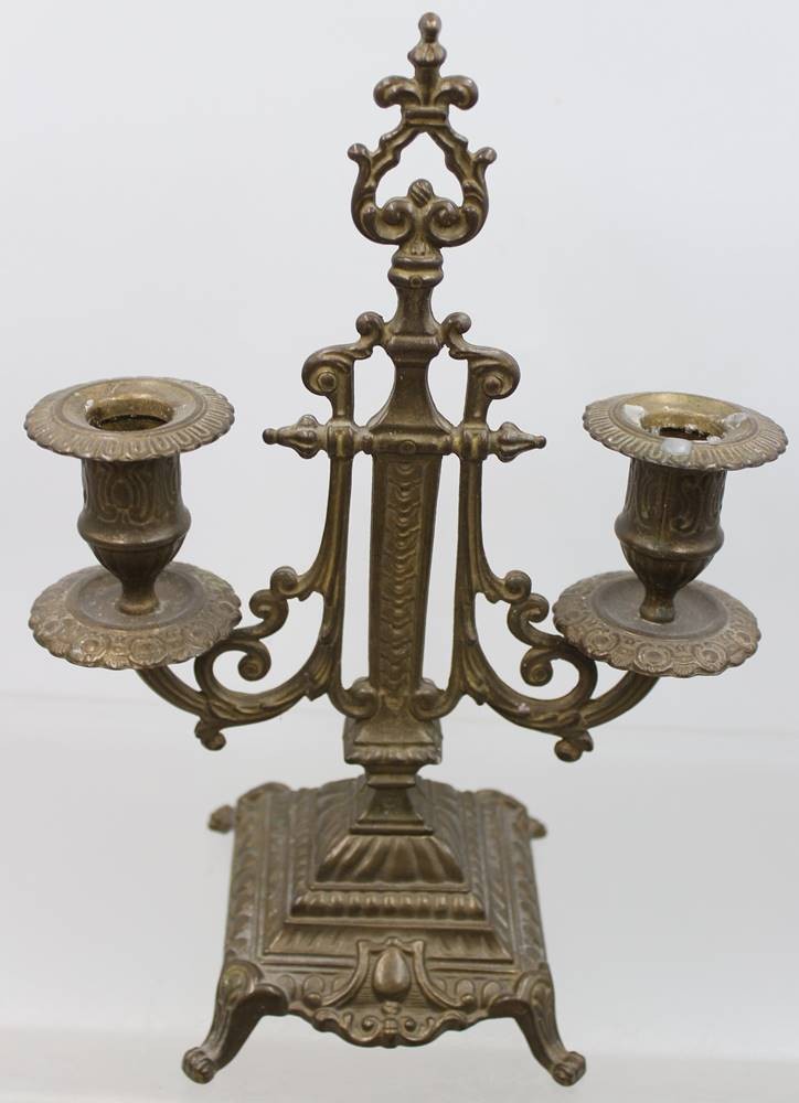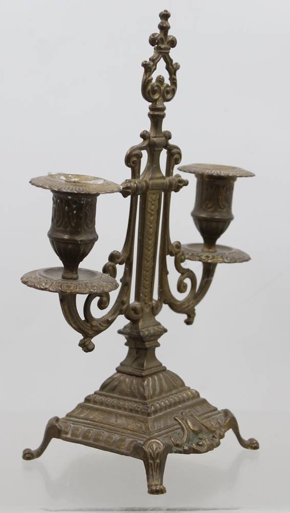 2flammiger Leuchter wohl um 1900, leicht verbogen, ca. H-27,5cm B-19cm [1]