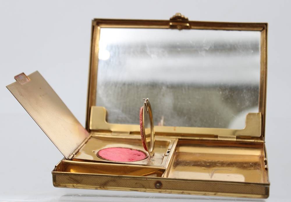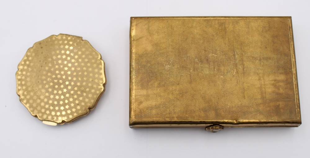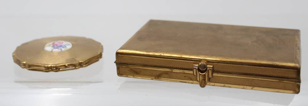 2x div. Puderdosen, Messing, 1x mit Einteilung, um 1920 und 1950, gr. ca. 8,5 x 12,5cm [1]