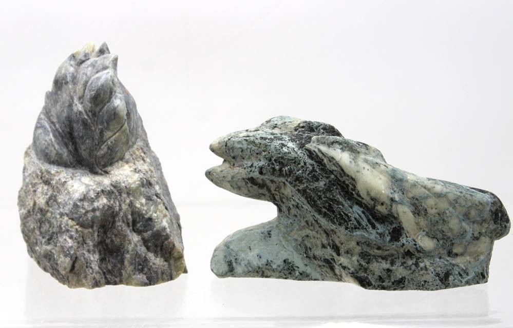 2x div. Steinskulpturen, je monogrammiert "AB", ca. H-13cm u. 10cm [1]