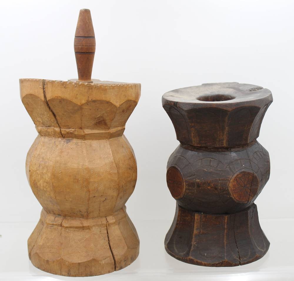 2x Holzmörser, wohl Afrika, ca. H-24-27cm [1]