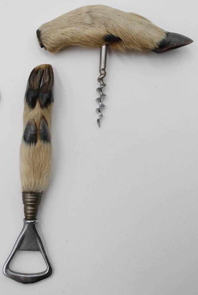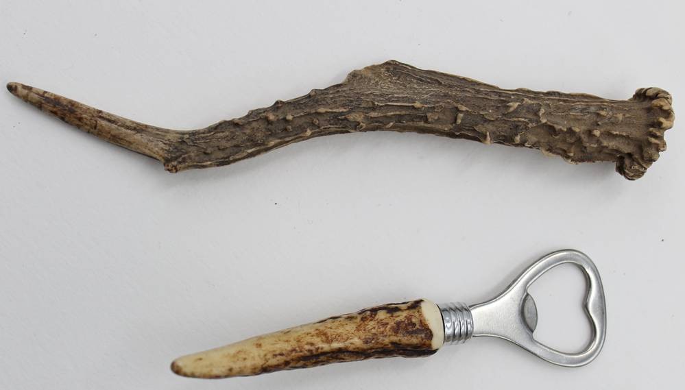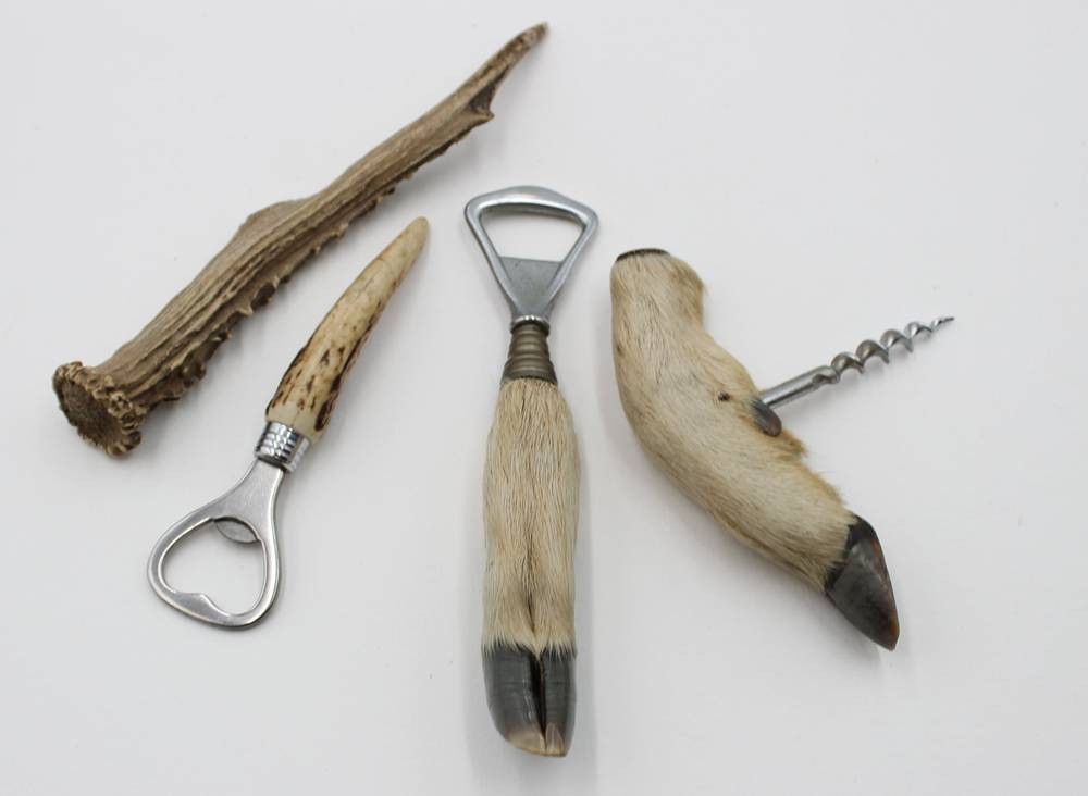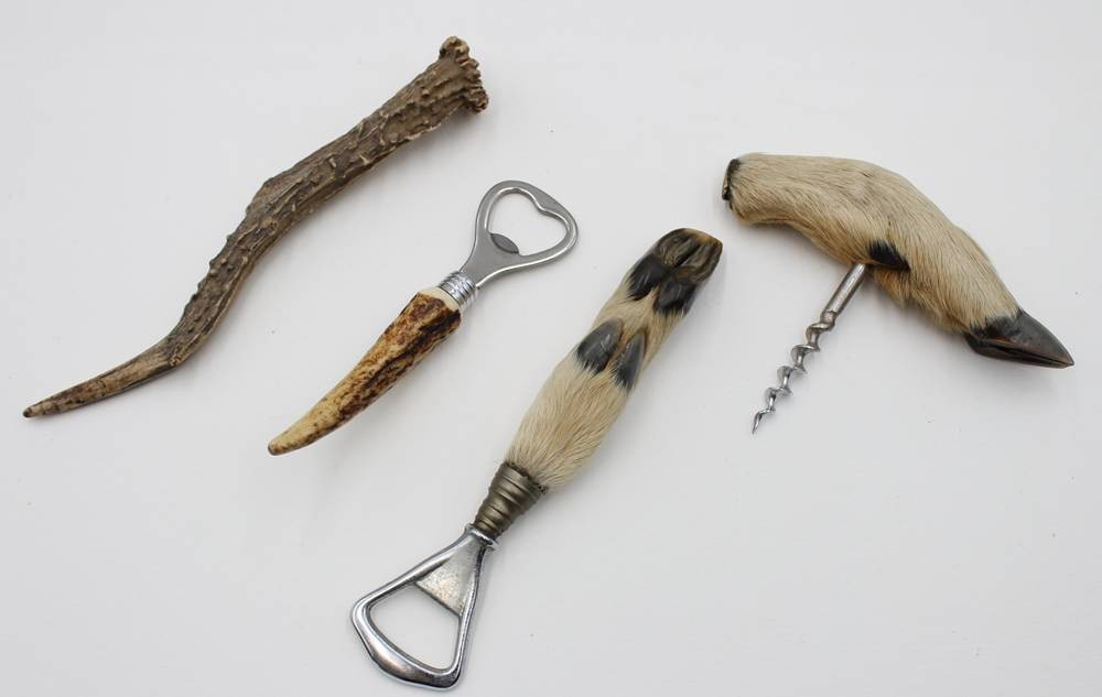 2x jagdl. Flaschenöffner und ein Korkenzieher sowie Geweihstück, ca. L-20cm [1]