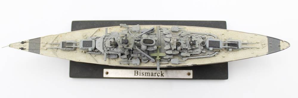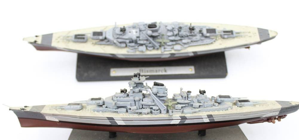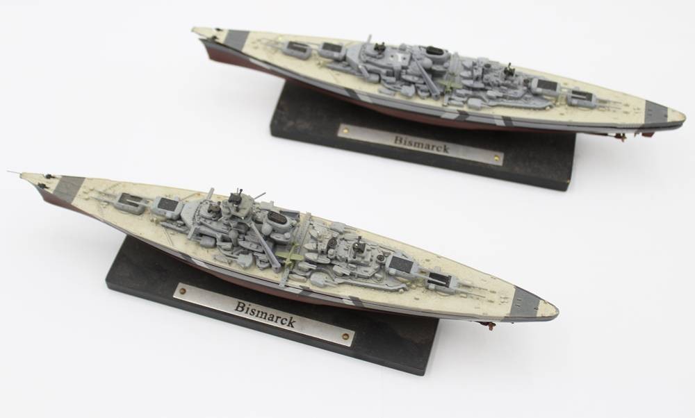 2x kl. Schiffmodelle der Bismarck, Metall, 1x beschädigt, ca. L-19cm [1]
