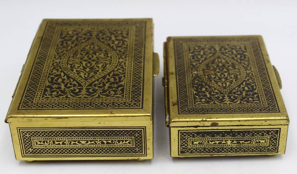 2x Messing Zigarettendosen, innen Holz