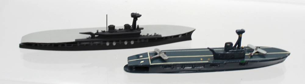 2x Schiffsminiaturen, 1x Wiking, älter, Flugzeugträger, 1x Hermes, ca. L-14,5cm