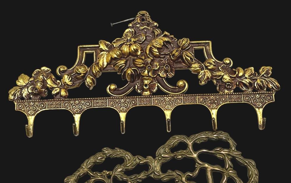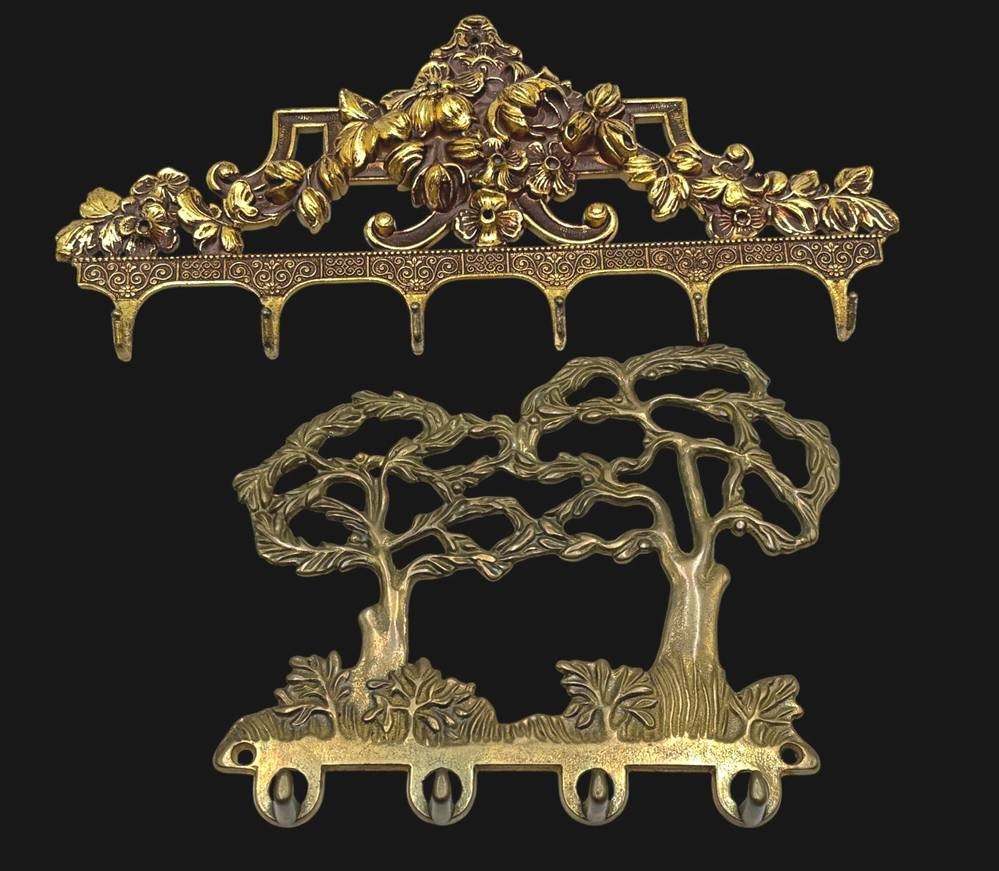2x Schlüssel-bzw. Küchenhandtuch-Halter, Messing, B-15 und 24 cm