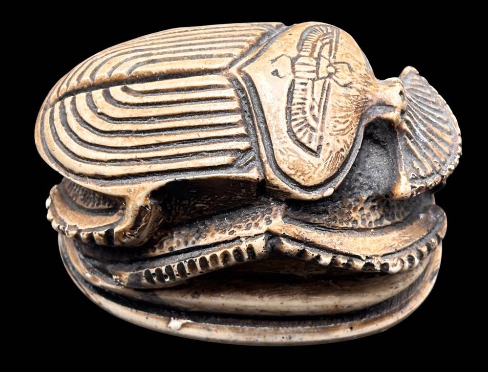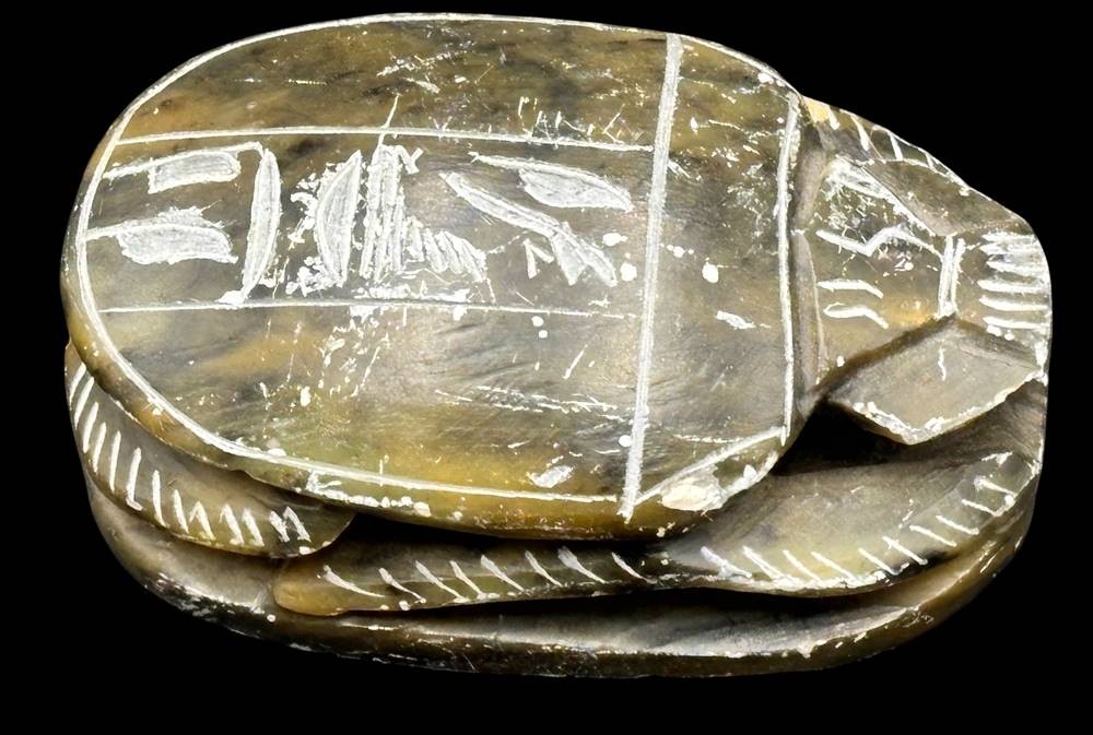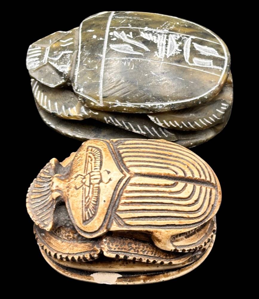 2x Skarabäen, 1x Fayence, 1x Speckstein, Abplatzer, Kratzer etc.,L- 9 und 10 cm