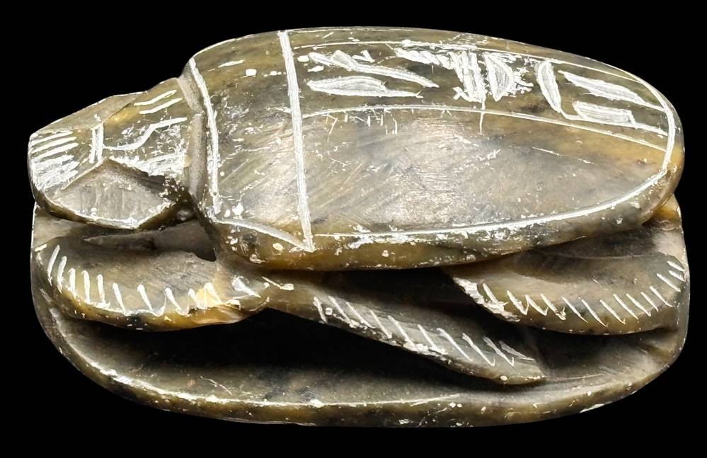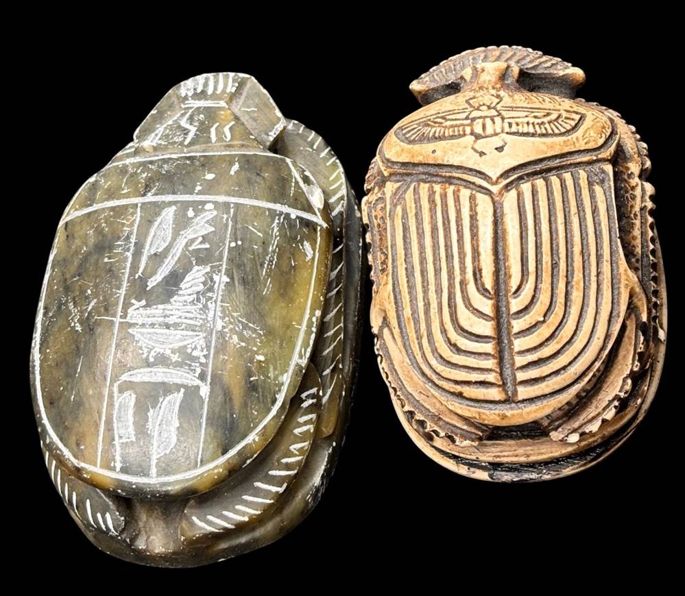 2x Skarabäen, 1x Fayence, 1x Speckstein, Abplatzer, Kratzer etc.,L- 9 und 10 cm [1]