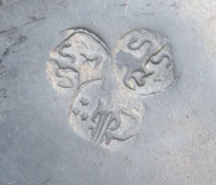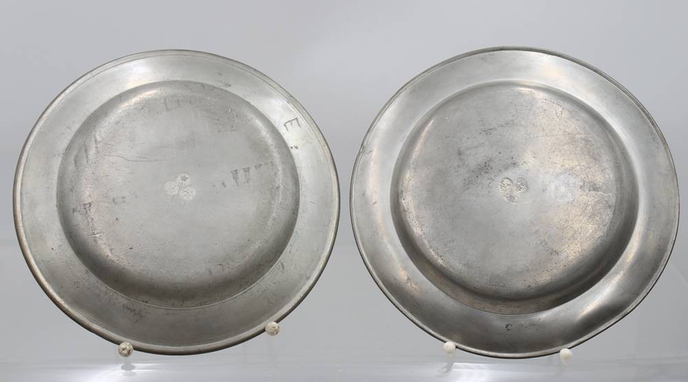2x Zinnteller, älter, untersch. Punzierungen, D-23,4cm [1]