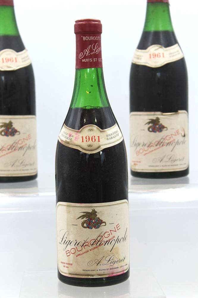 3 Flaschen Rotwein, 1961 Bourgogne Aligoté , A. Ligeret. etwas Verdunstungsverlust [1]