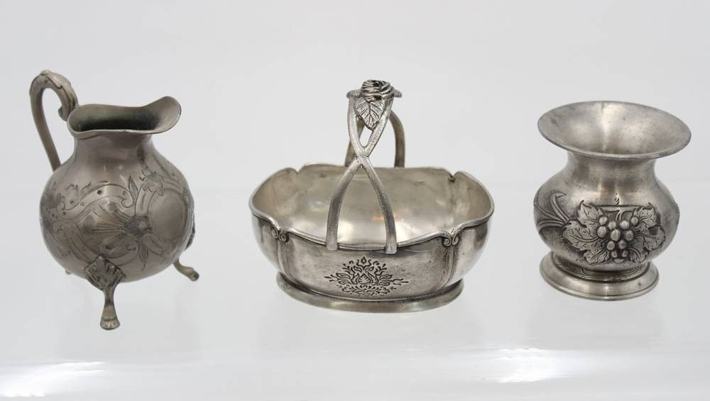 3 Teile div. Zinn, neuzeitl., ca. H-11,5cm [1]