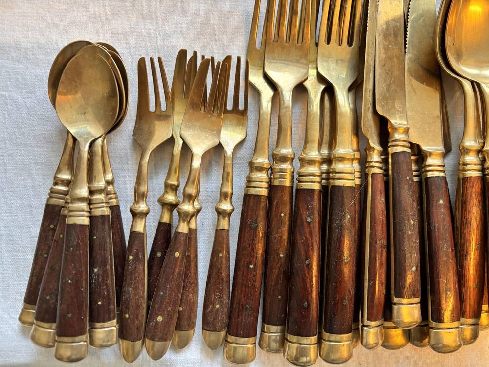 36 tg. Jagdbesteck, Bronze und Holzgriffe, ungepflegt, für 6 Pers. (nur 5 Kuchengabeln) [1]