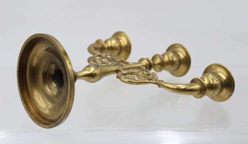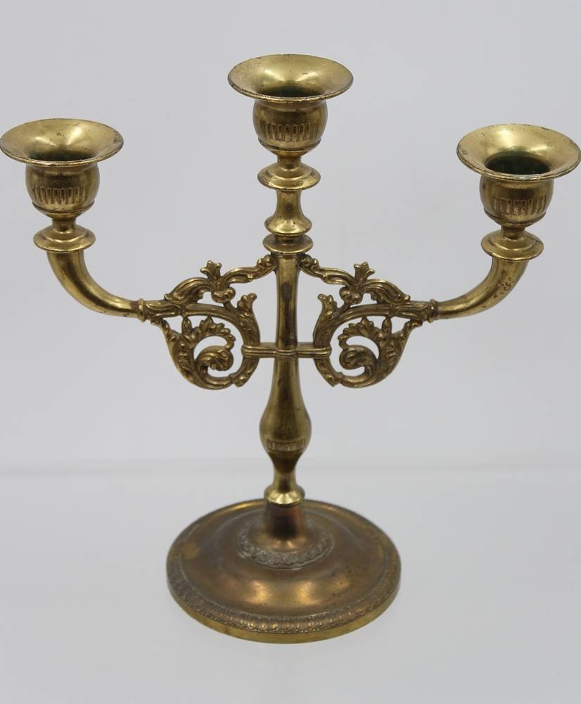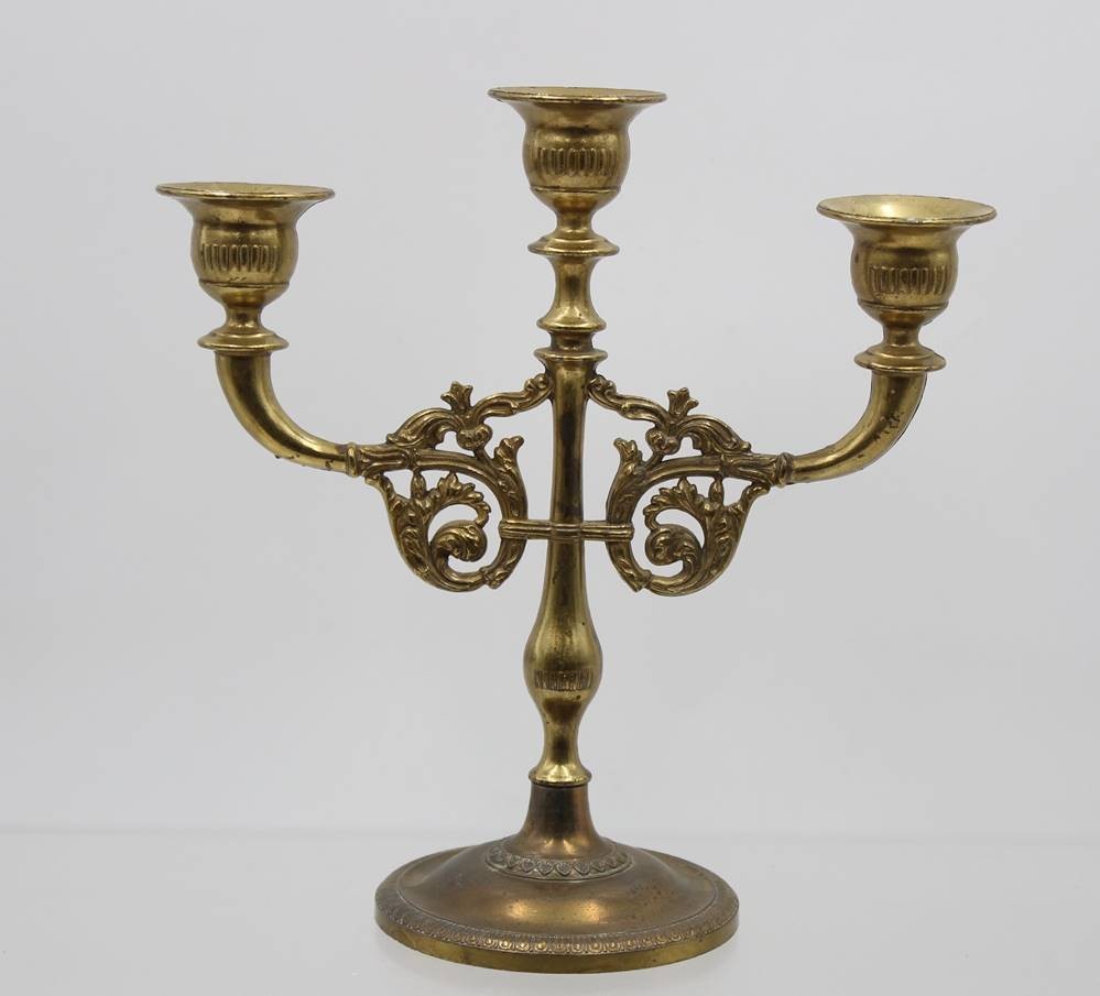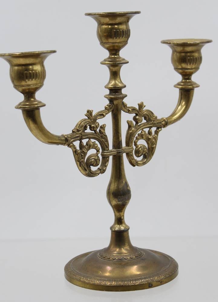 3flammiger Leuchter, Messing, neuzeitl. , ca. H-21,5cm B-21,5cm [1]