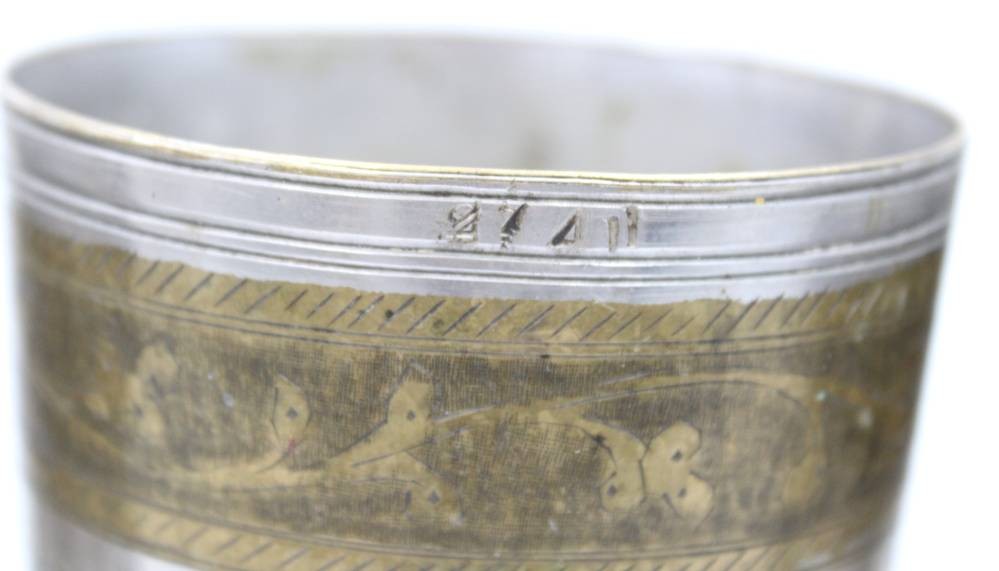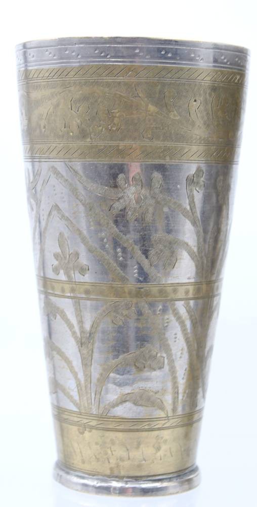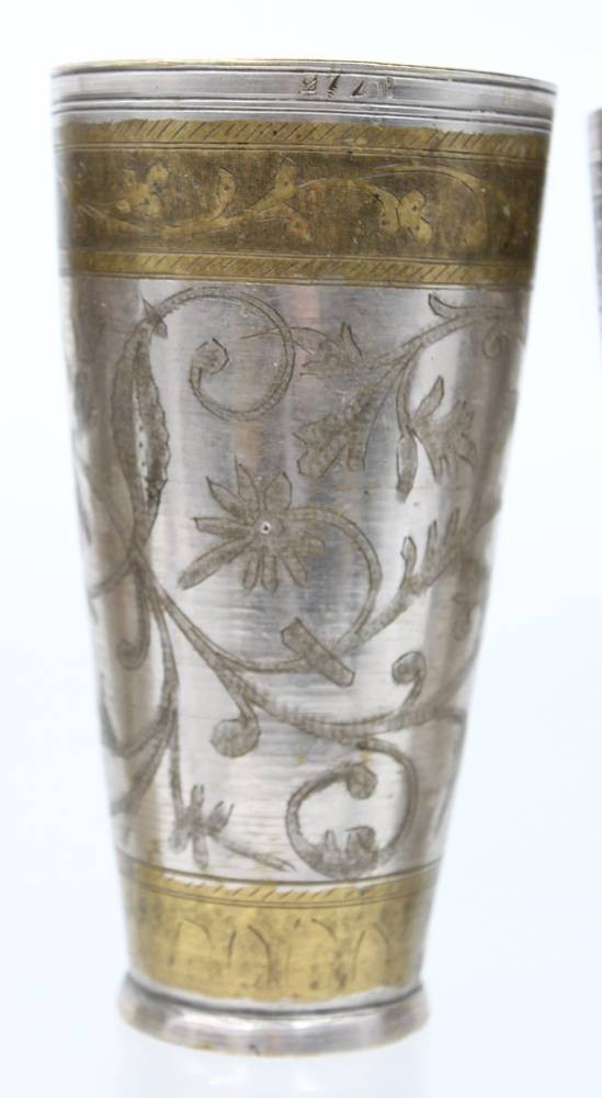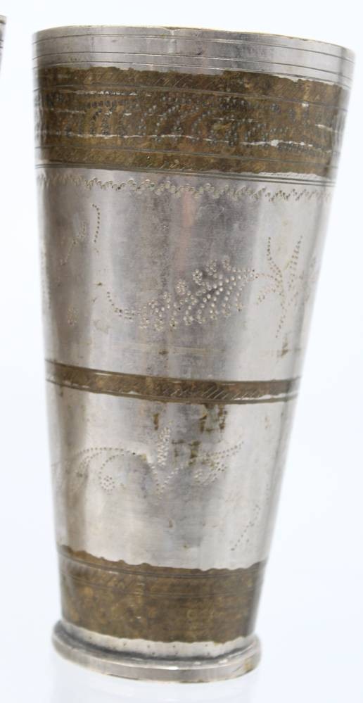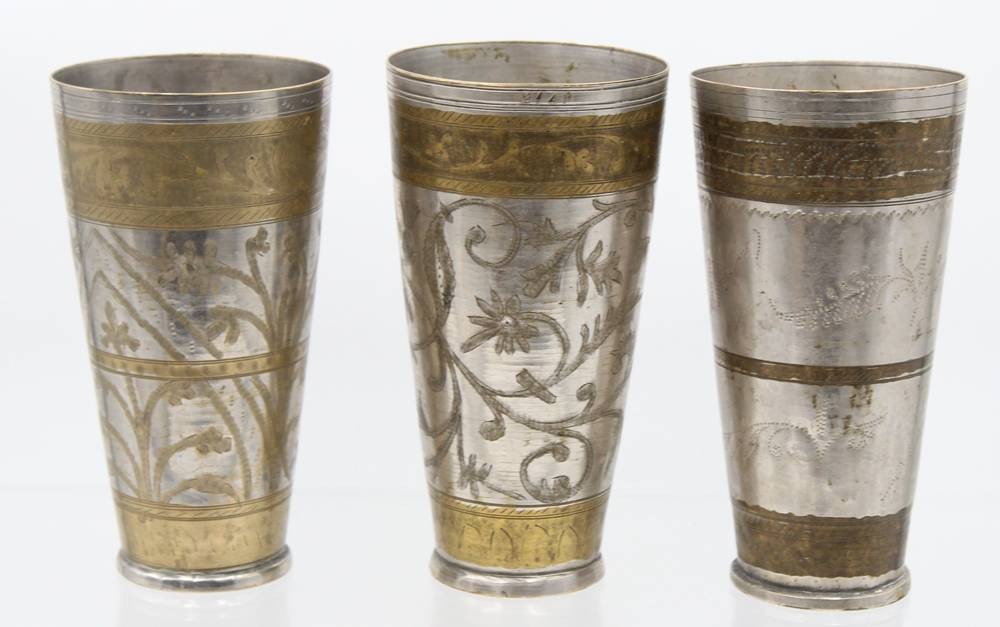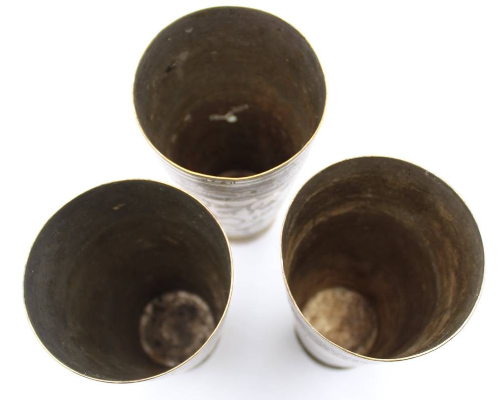 3x antik orient Afghan? Messing versilbert Karawanen Lassi Becher Pilgerbecher ?, H- ca. 18 cm [1]