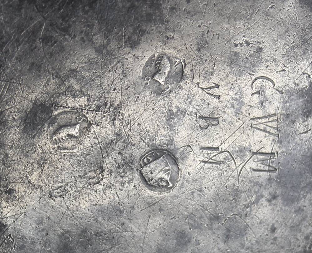 3x div. antike Zinn-Teller, je mit div. Punzen, ca. D-24 bis 26,5cm [1]
