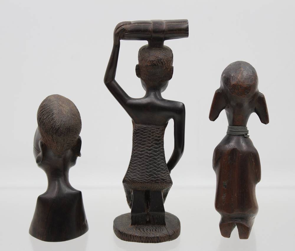 3x div. Figuren, Afrika, Ebenholz, ca. H-17cm bis 11cm [1]