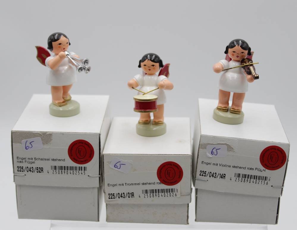 3x div. Musik-Engel, Erzgebirge, Uhlig, orig. Kartons, ca. H-5,5cm. [1]