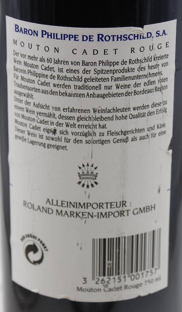 4 Flaschen, Mouton Cadet Bordeaux, Baron Philippe de Rothschild, Jahrgang 1990 [1]