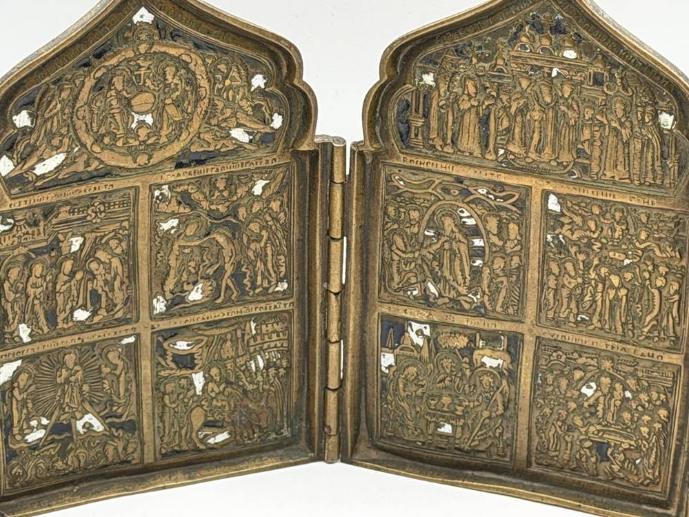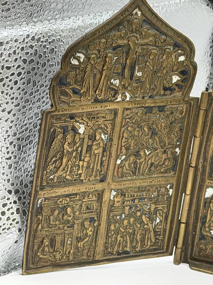 4 flügeliger Bronze Reisealtar, Szenen aus dem Leben Christ, H-15 cm, B-ca. 40 cm [1]