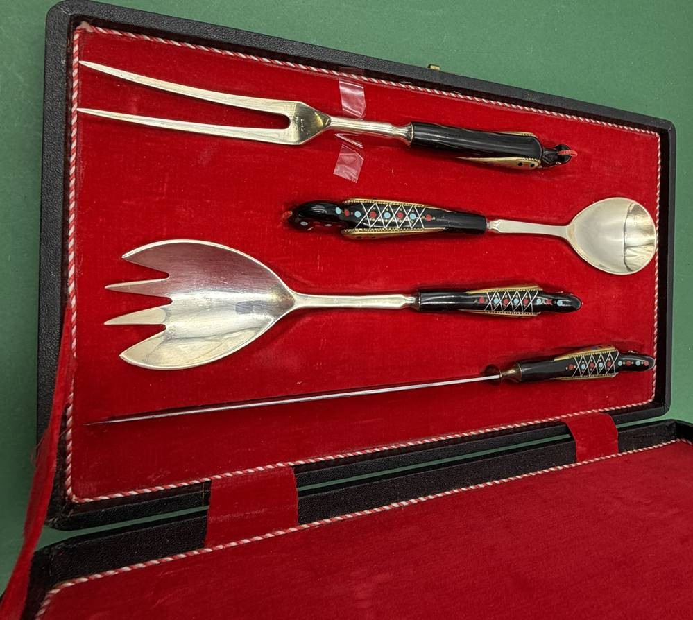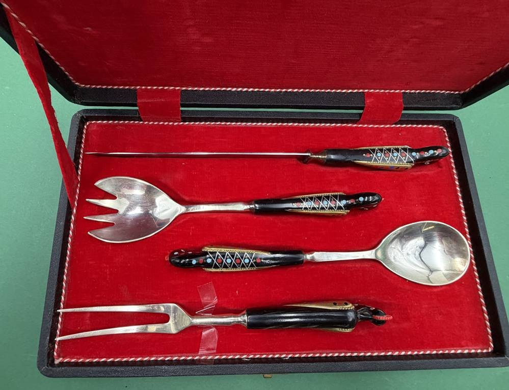 4 tg. russisches Vorlegebesteck in Kasten, Handarbeit [1]