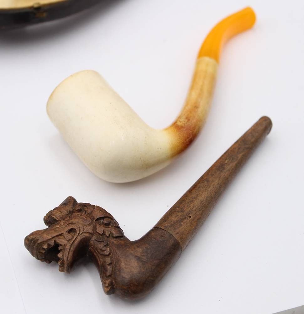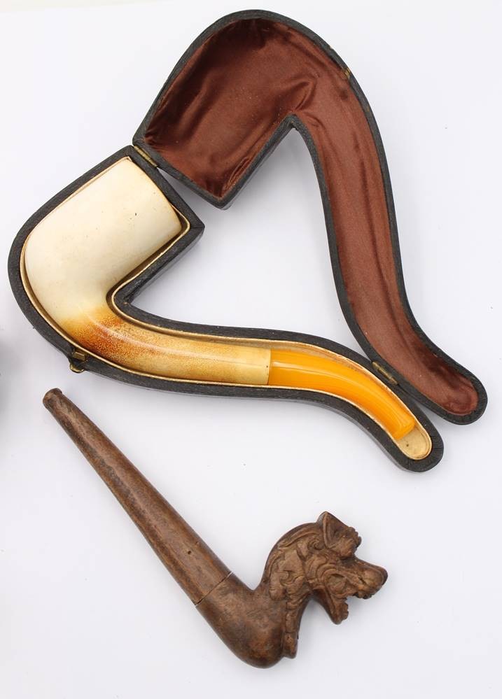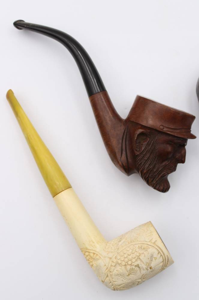 4x div. ältere Pfeifen, 2x Meerschaum, 1x gemarkt, ca. L-17cm