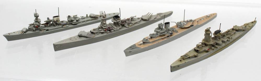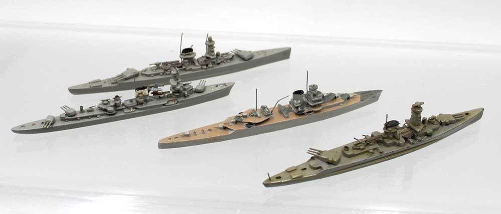 4x Schiffsminiaturen, Wiking, älter, Kriegsschiffe, ca. L-15,5cm
