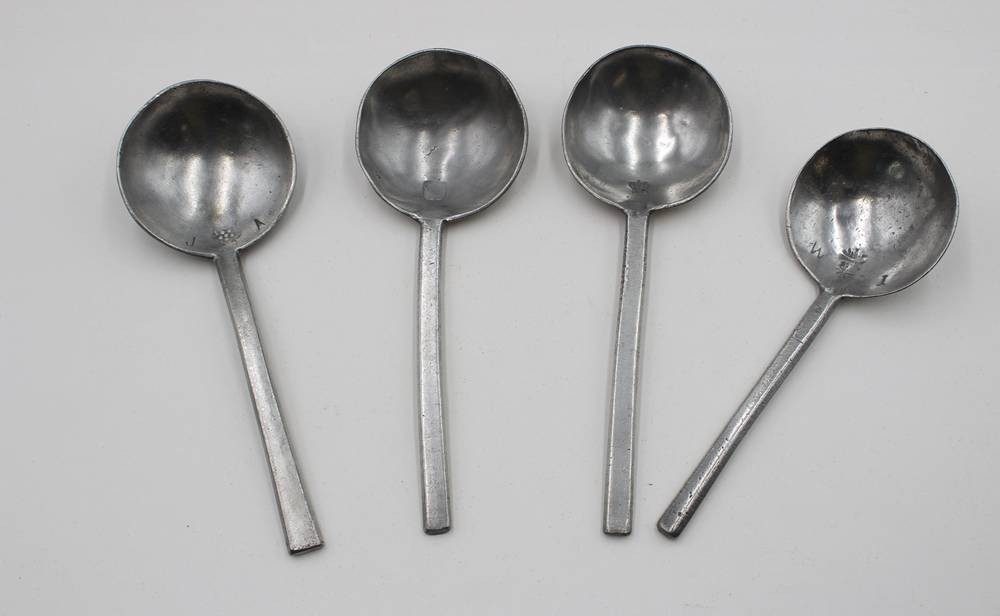 4x Zinnlöffel, älter, ca. L-18cm [1]